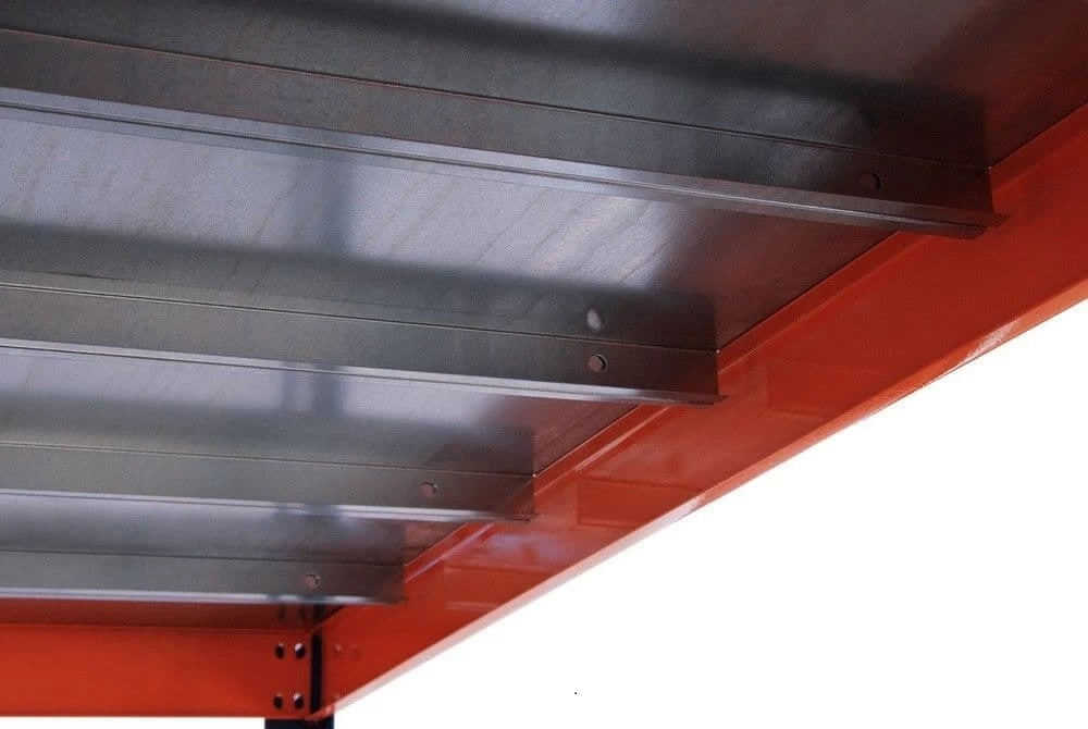 - В качестве полок используется листовой фанерный настил повышенной прочности, уложенных на каркас из гнутого С-образного металлического профиля.